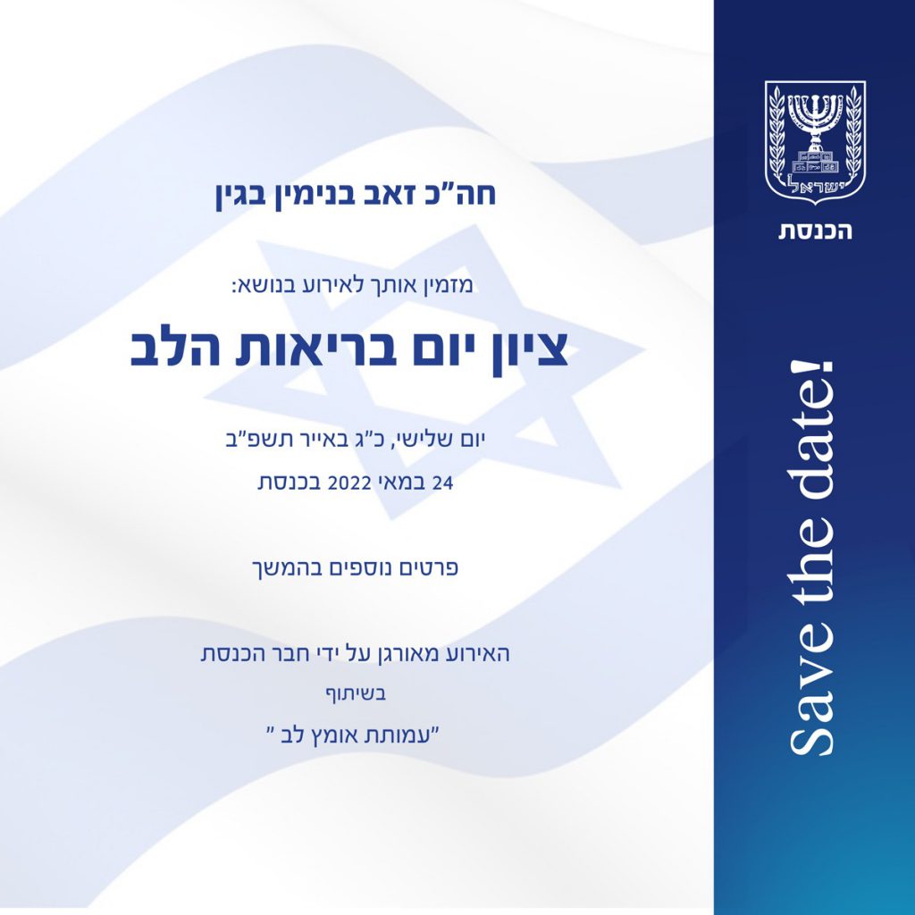 חברים יקרים, על מנת להערך ליום בריאות הלב  בכנסת ישראל,  הנכם מתבקשים למלא את השאלון הבא ללא מענה על השאלון לא נוכל לדאוג להכנסתכם לכנסת. אנא מלאו את כל הפרטים.